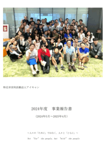 いつもアイキャンを応援いただきありがとうございます。2024年度事業報告書、2024年度活動計算書を公開しました。■2024年度事業報告書はこちら ■2024年度活動計算書はこちら今後ともアイキャンをよろしくお願いいたします。過去の事業報告書・活動計算書はこちらからご覧いただけます。