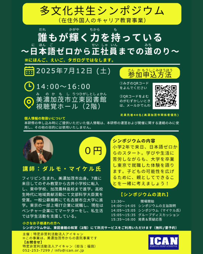 2025年7月12日(土)、美濃加茂市にて開催しました多文化共生シンポジウム「誰もが輝く力を持っている~日本語ゼロから正社員までの道のり~」について、朝日新聞にて記事が掲載されました。