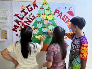 フィリピンでは、クリスマスは家族を想う大切な日です。私たちインターン生は、児童養護施設「子どもの家」の子どもたちにとっての“家族”である寮父母やスタッフに、子どもたちから改めて感謝を伝える機会をつくりたいと考えました。そこで、クリスマスツリーの飾りをかたどったカードを作り、子どもたちにメッセージを書いてもらうことにしました。